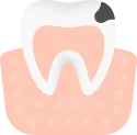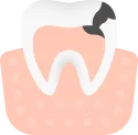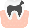 Смещаясь, зуб начинает притираться к соседним, повреждая эмаль — возникает кариес:
